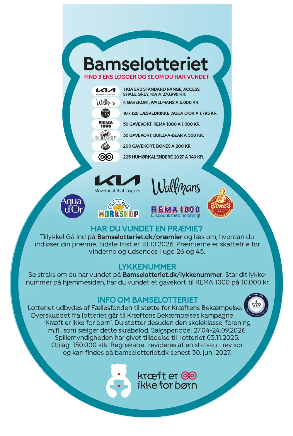 Bamselotteriet må sælges fra den 27. april til den 24. september 2026